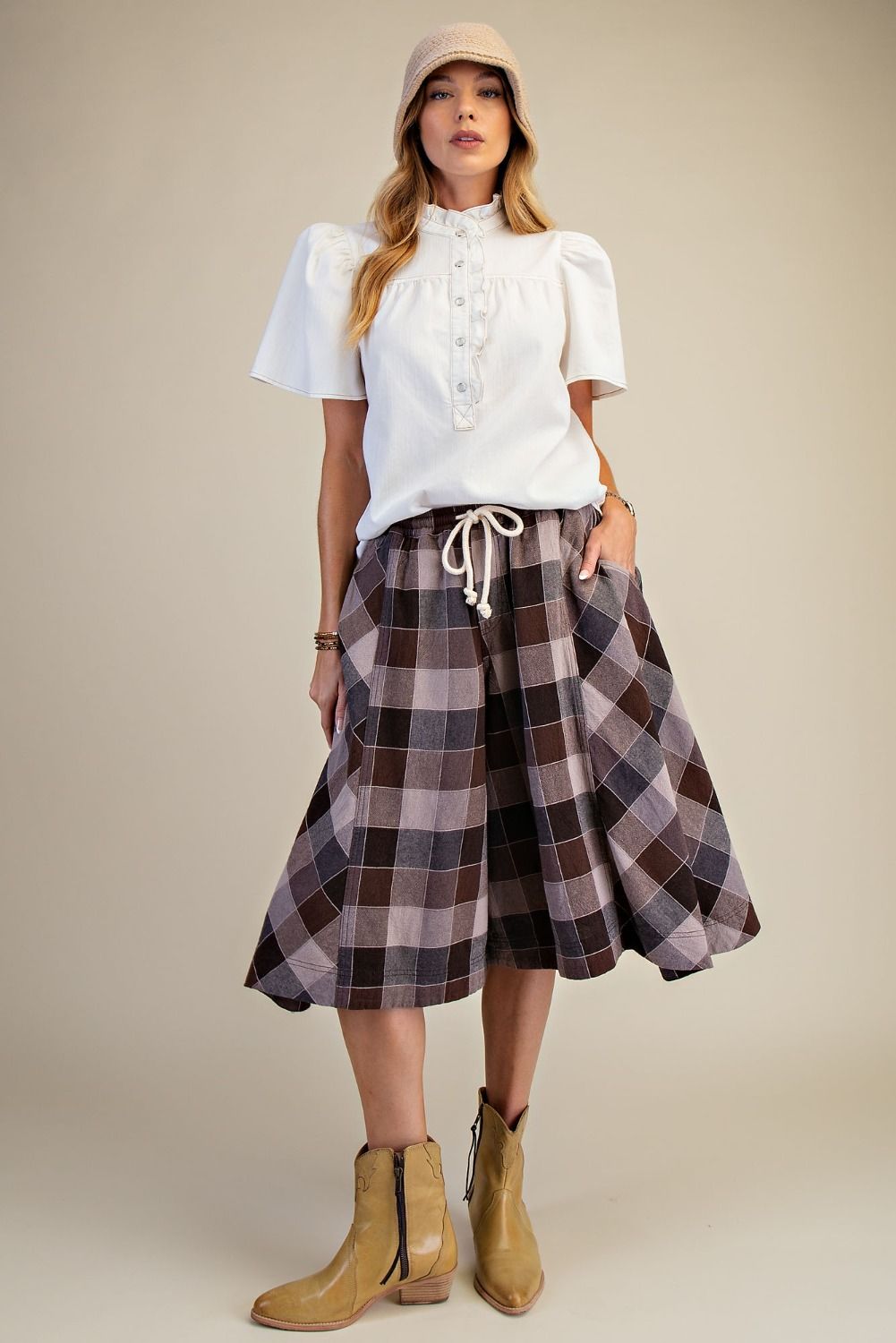 Effortless charm meets everyday versatility in this chambray button-down. Crisp white fabric drapes in a relaxed, loose silhouette that feels as good as it looks. Snap buttons and delicate ruffle details add a playful touch, while short puff sleeves frame the shoulders with just the right amount of flair. Lightweight and breathable, it's your new go-to for layering, dressing up casual looks, or standing solo. Perfect for travel, weekend getaways, or simply looking put-together without trying too hard. 68% Cotton 30% Poly 2% Spand