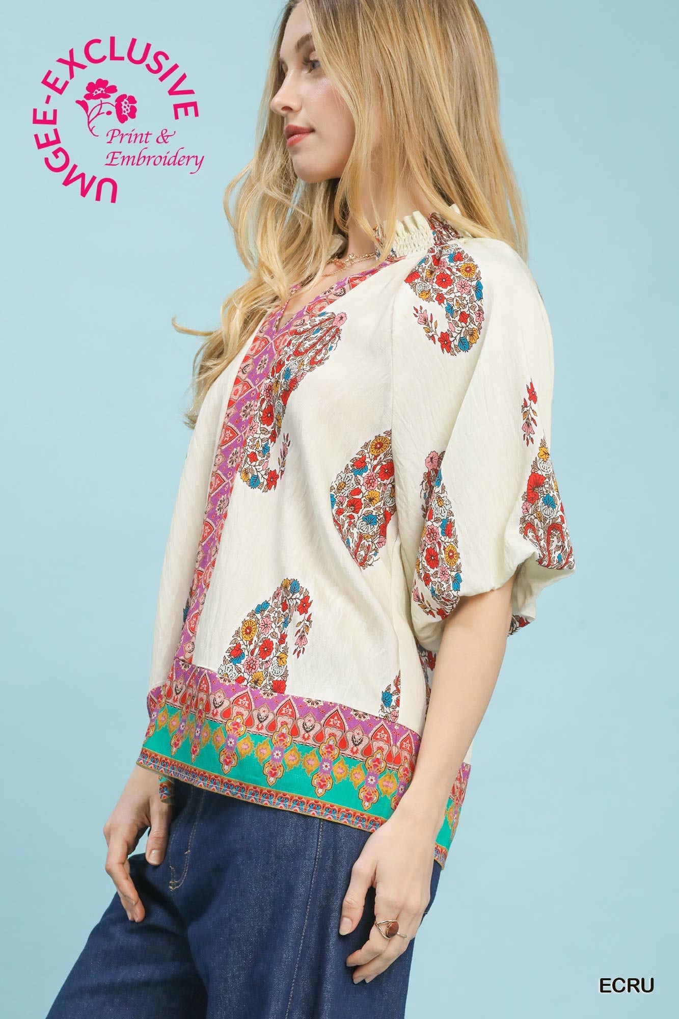 Paisley Border Print Top ECRU