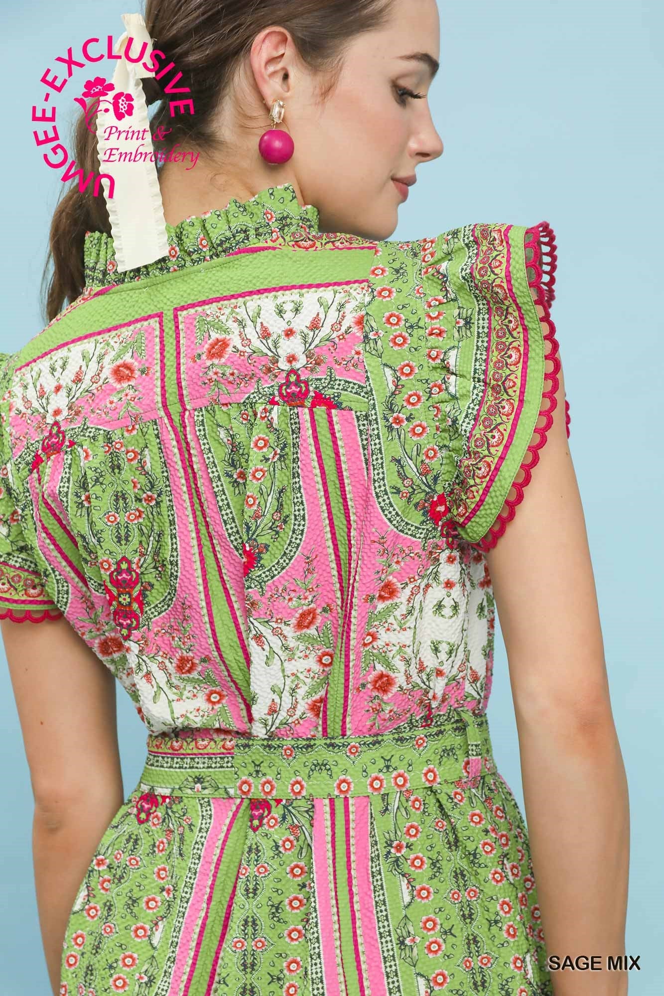Valerie Mixed Print Ruffle Dress Sage